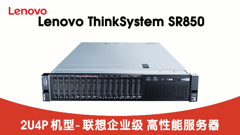 Lenvov ThinkSystem SR850 服务器 - 四路 2U 机架式服务器,采用第2代Intel Xeon 可扩展处理器,48个内存插槽,9个PCIe扩展槽,多达16个2.5英寸HDD 和SSD 存储托架,支持RAID卡,2个电源支持冗余,适用于计算密集型工作负载。