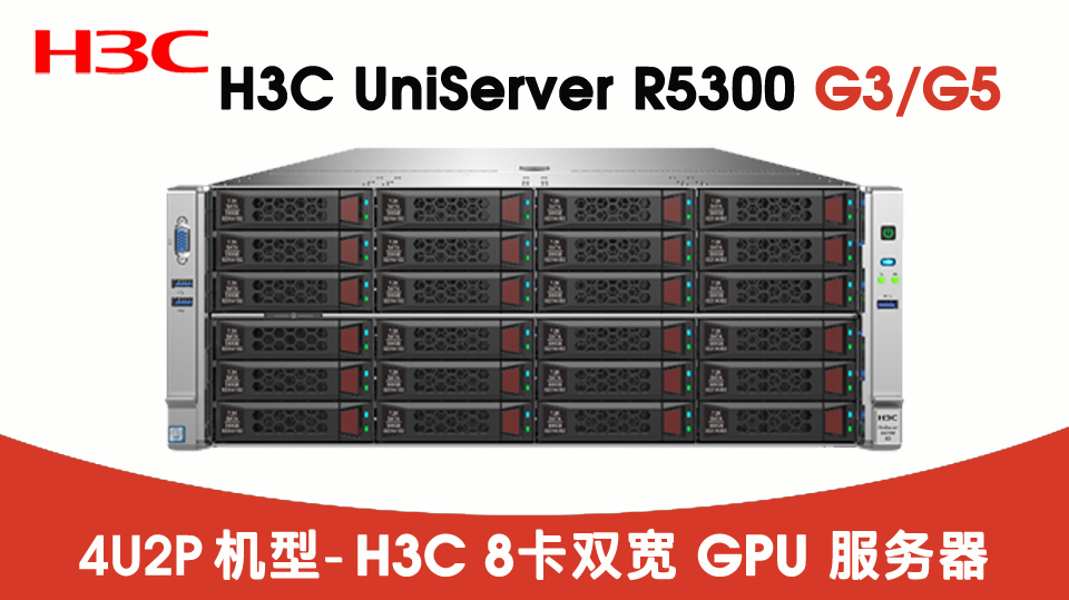 H3C UniServer R5300 G3服务器 - H3C 基于 Purley平台完全自主研发的 4U异构服务器,适用于人工智能、高性能计算等业务,针对深度学习的训练、推理和 HPC 等业务类型进行优化,支持8块双宽或20块单宽GPU 计算模块。