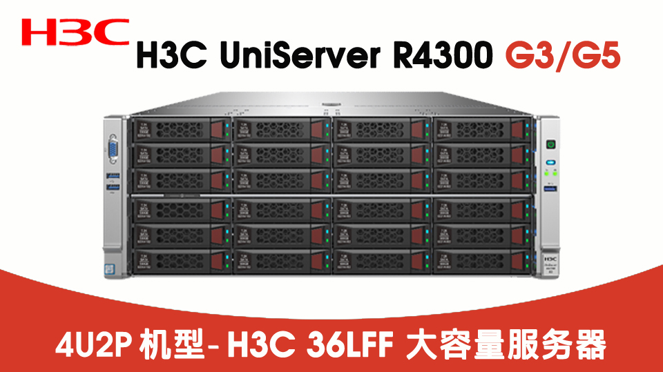 H3C UniServer R4300 G3是新华三自主研发的4U两路存储优化型机架服务器,通过高达52块硬盘以及傲腾持久内存和NVMe,在4U空间内满足高存储密度、高效数据计算、线性扩展的综合需求,适合于分布式存储、大数据和备份归档应用。