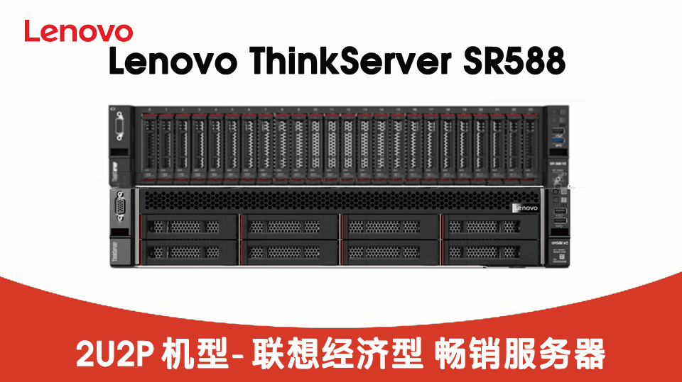 Lenvov ThinkServer SR588 服务器 - 双路 2U 机架式服务器,采用16个内存插槽,多达16个2.5英寸或12个3.5英寸热插拔硬盘,支持RAID卡,2个电源支持电源,可满足大中型企业对于云和大数据环境的需求,同时也适合小规模虚拟化、协作和生产力应用环境。